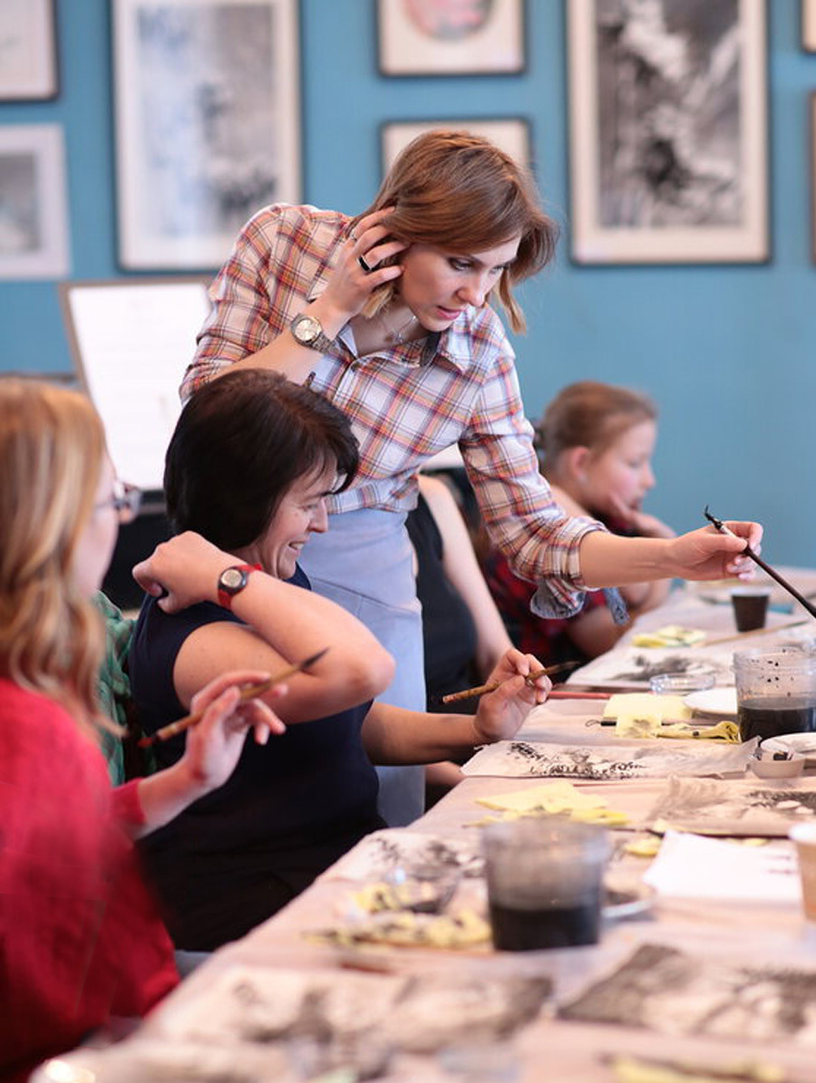 With my action, I urged to unite spiritually, to confront the problem together, to show maximum calmness, attention and care for each other, to do everything that depends on us in ours place. Therefore, the method of painting this landscape using not only brushes, but also palms, is symbolic, just as the artistic image of the picture is symbolic.